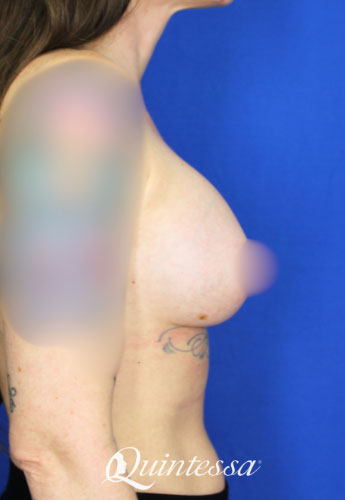 43 year old patient who underwent a subfascial breast augmentation with moderate profile round 330cc implant. She is 5’4″ and weighs 120 pounds.