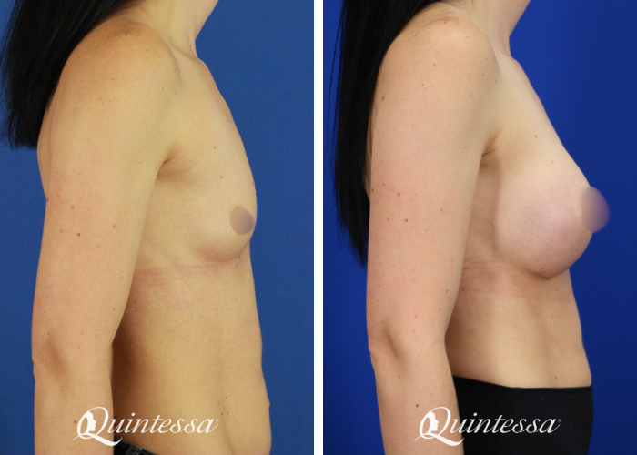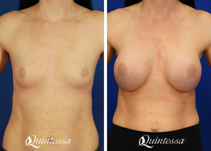 This patient is 5’5 and 120 lbs. She received a bilateral silicone breast augmentation using 365cc Natrelle soft touch full profile implants.