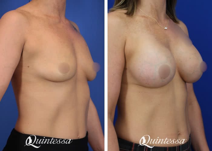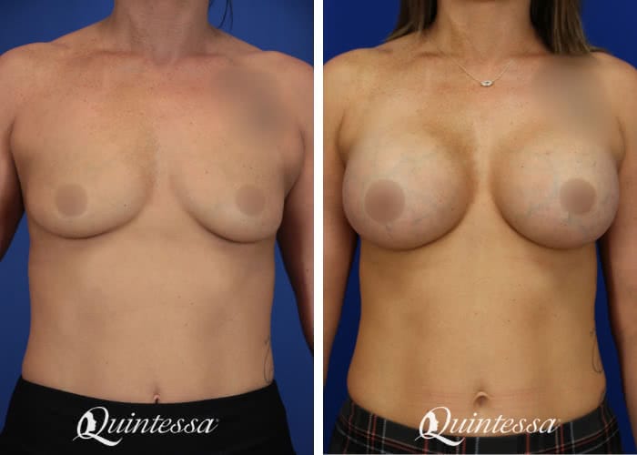 This patient desired a more enhanced look for her breasts after 3 pregnancies left her feeling deflated. Patient received a bilateral dual plane breast augmentation with 450 cc full profile Motiva Ergonomix implants and TIGR mesh support. Age: 39 Height: 5’7″ Weight: 146 lbs
