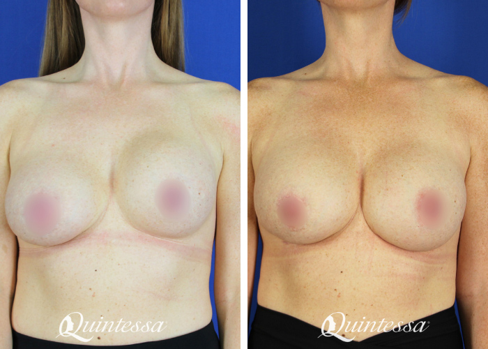 34-year-old patient who underwent bilateral breast augmentation revision. She is 5’7″ and weighs 140 pounds.