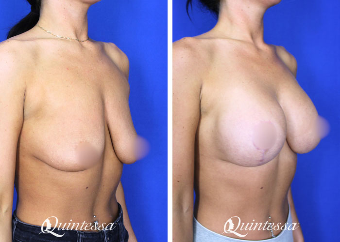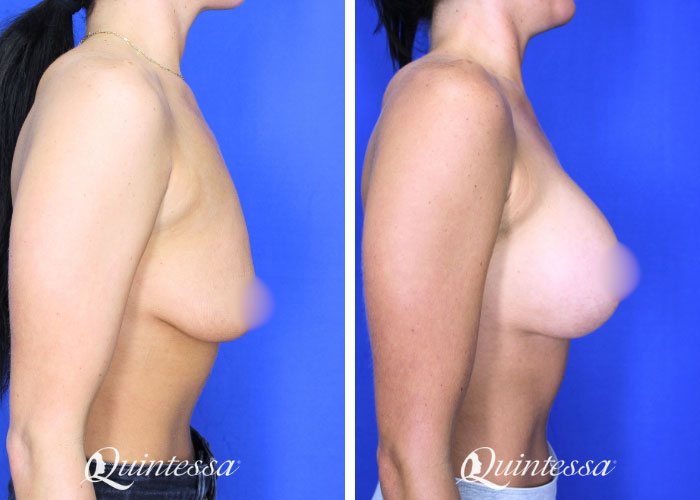 26 year old patient who underwent subfascial augmentation with lift using a round Demi profile 360cc implant. She is 5’6″ and weighs 145 pounds.