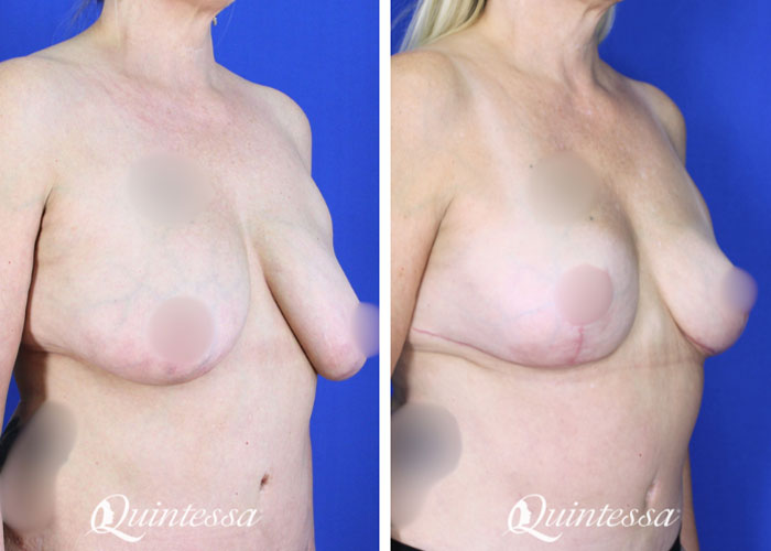 60 year old patient who underwent bilateral breast lift. She is 5’4″ and weighs 155 pounds.