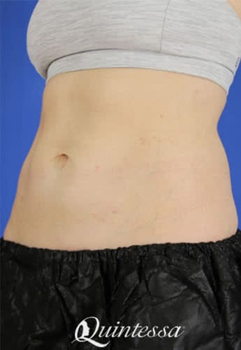 This 42-year-old patient received two CoolSculpting sessions on the abdomen. Photos were taken eight weeks after the final treatment to show results