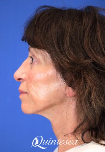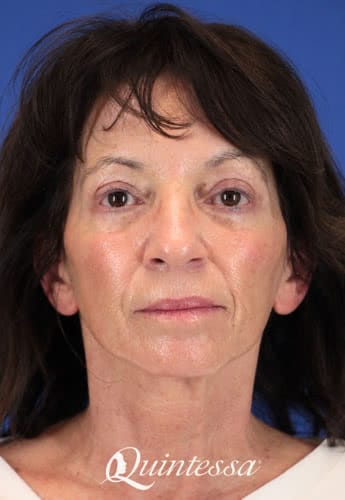 Patient received a deep plane facelift with platysmaplasty, mini lift, facial fat grafting, and full-face Erbium laser resurfacing. Fat was transferred to the left and right cheeks/midface. Age: 64