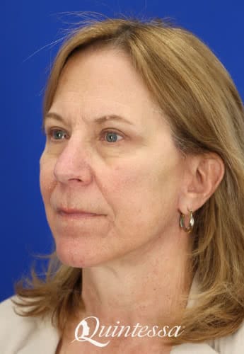 The patient received an upper blepharoplasty, lower transconjunctival blepharoplasty, mini lift, and platysmaplasty. Age: 70