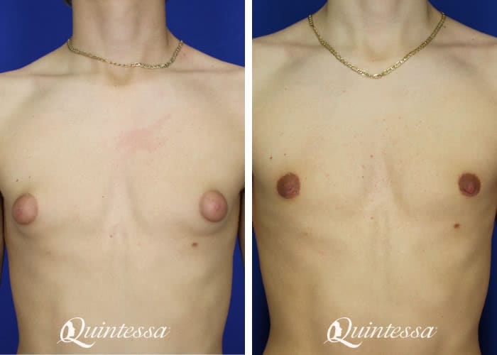 19 year old patient who underwent excisino of gynecomastia tissue excision with chest liposuction.