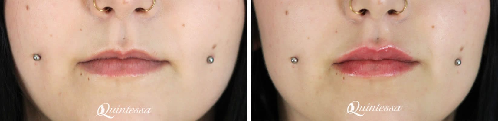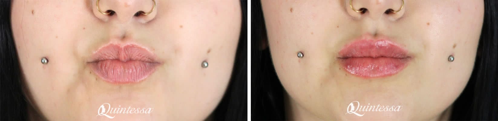 This 25-year-old patient received 1cc of filler in the lips to add natural-looking volume and enhance shape. Results shown immediately after treatment.