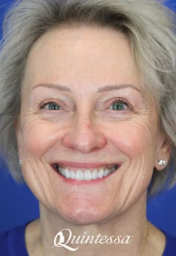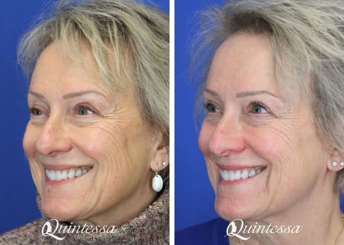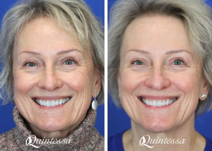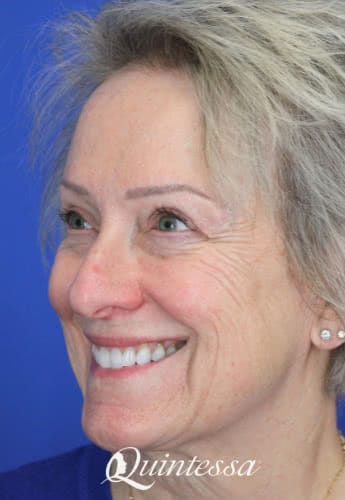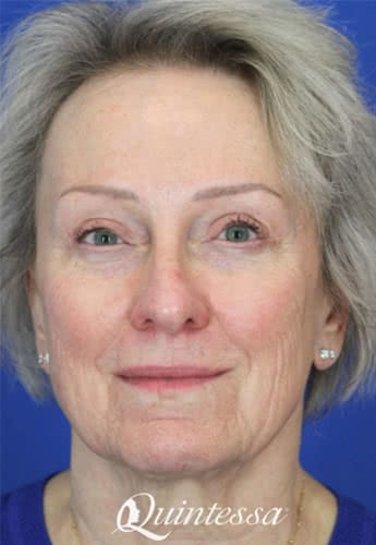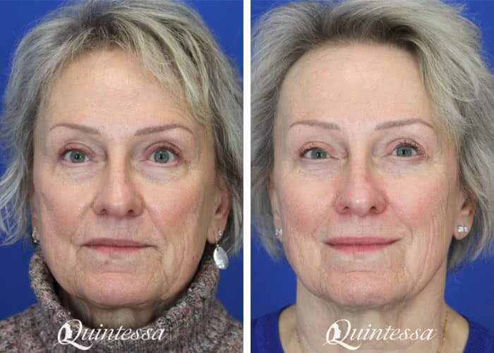 This 74-year-old patient received 4ml of filler in the cheeks and around the mouth to smooth lines and restore a natural, lifted appearance. Results shown three weeks after treatment.