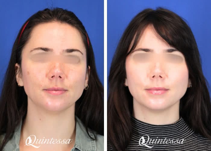 This 33-year-old patient received a full-face BBL treatment to improve skin tone and texture, with photos taken two weeks apart to show results.