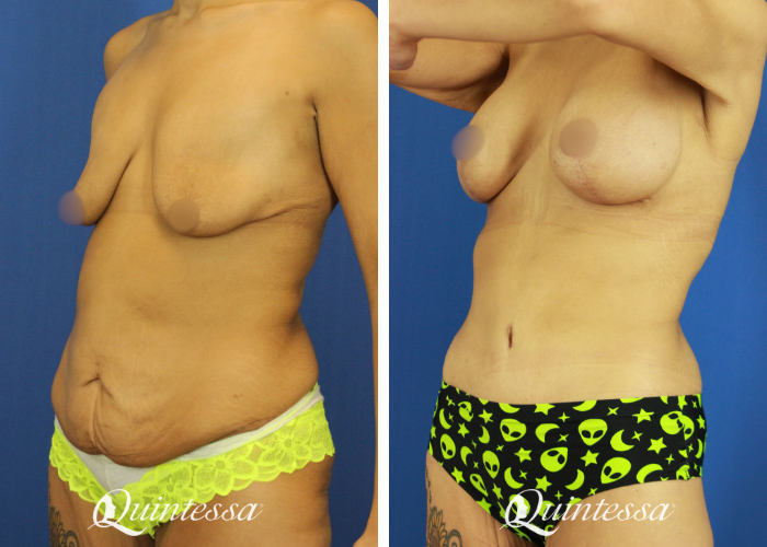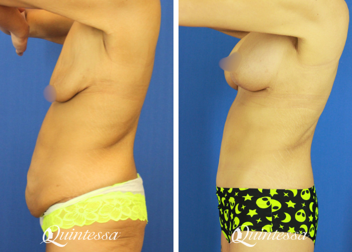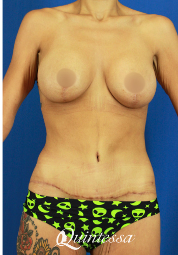 Patient is 5’7” 150 lbs. She received a torsoplasty and bilateral silicone breast augmentation with Natrelle soft touch 375cc moderate profile implants with breast lift.